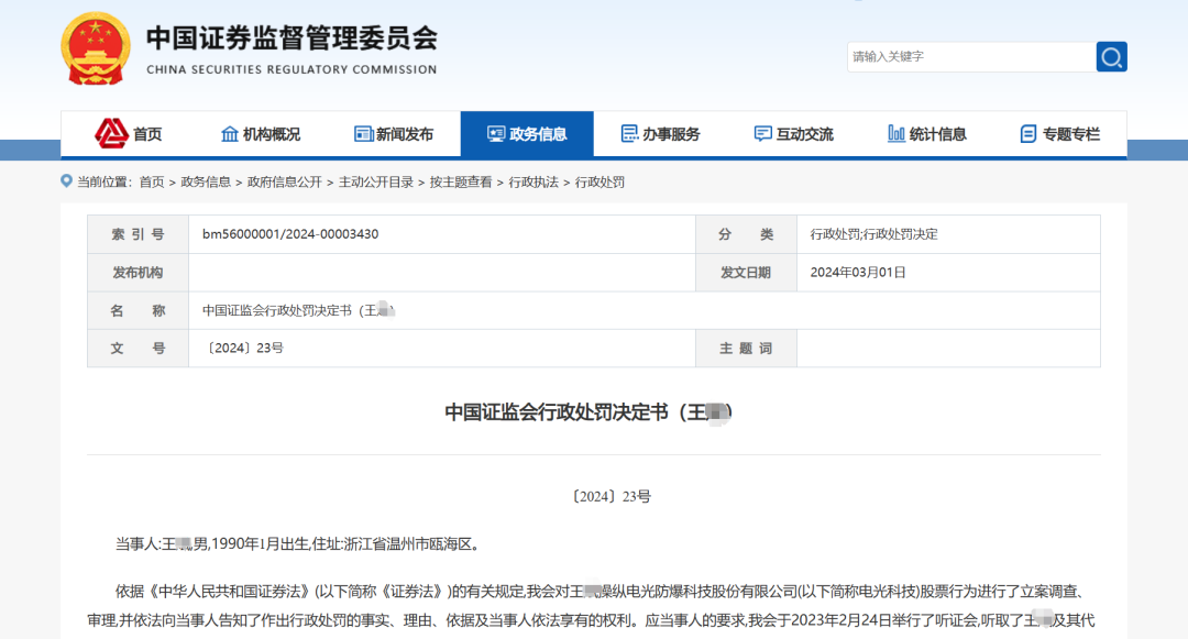 近日,证监会公布了一则操纵股票的罚单。王某,90后,证监会对其操纵“电光科技”股票行为作出了处罚。